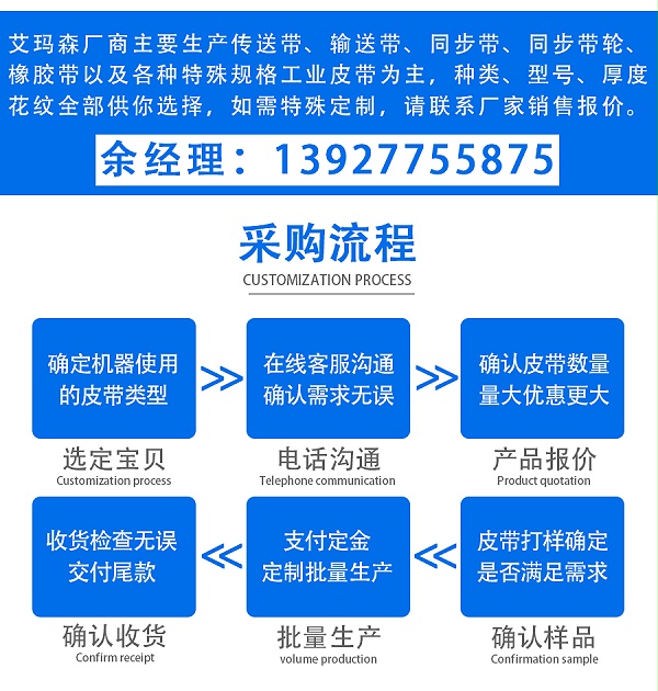 PVC输送带带体弹性好,不易变形。选用高强力优质全棉、尼龙、聚酯帆布作带芯,用PVC无污染配合剂制成,且可根据客户要求特殊定,如加挡板、裙边、PVC导条等。